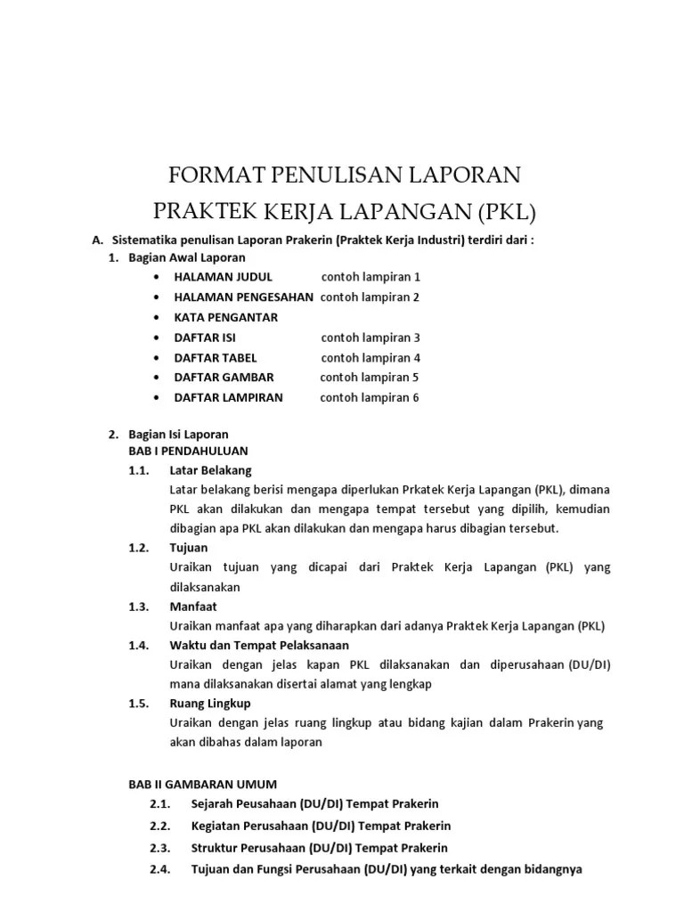 Halaman » pendahuluan tujuan penulisan laporan tujuan dari penulisan laporan ini adalah agar para siswa dapat melatih jiwa mandiri, tanggung jawab serta disiplin. Kegiatan prakerin tersebut banyak dilakukan oleh siswa siswi sekolah menengah kejuruan kelas 2 pada pertengan semester maupun para mahasiswa semester pertengahan. Ruang lingkup dalam laporan prakerin ini mencakup gambaran umum tentang perusahaan struktur organisasi perusahaan … Renstra kominfo 2014 by wedi mardianto. 17.07.2019 · teknik penulisan laporan prakerin tkj smk yadika. 08.06.2020 · ragam ⏩contoh penulisan lembar pengesahan proposal penelitian makalah karya ilmiah skripsi pkl baca ⏩penelitianilmiah.com Pedoman penulisan ini memberikan petunjuk tentang cara menulis karya ilmiah. 24.08.2017 · contoh laporan untuk kamu yang masih yang masih bingung dalam membuat laporan pkl atau prkerin silahkan simak artikel berikut ini karena dalam artikel ini akan dibahas tuntas mengenai pedoman membuat laporan pkl contoh laporan pklprakerin yang baik dan benar. Laporan pkl adalah hasil penulisan siswa setalah menyelesaikan pkl berdasarkan data yang di peroleh dan dituangkan dalam bentuk tulisan ilmiah adapun tujuan pembuatan laporan ilmiah antara lain: Contoh presentasi power point laporan pkl. Kami sadar bahwa buku … Penulisan usulan/laporan pkl dan skripsi memerlukan adanya buku pedoman. Identifikasi masalah identifikasi masalah adalah sebuah pendekatan yang di ambil oleh penulis untuk menganalisa suatu.